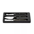 Iedere kaassoort heeft een eigen mes nodig. Of je nu een zachte kaas moet uitsmeren of een harde kaas in stukjes wil snijden. Doe dit in stijl met de grijs Pakka kaasmessen uit de Innovation Line. Deze 3-delige set wordt geleverd in een zwart houten tray en is door de houten afwerking niet vaatwasserbestendig.